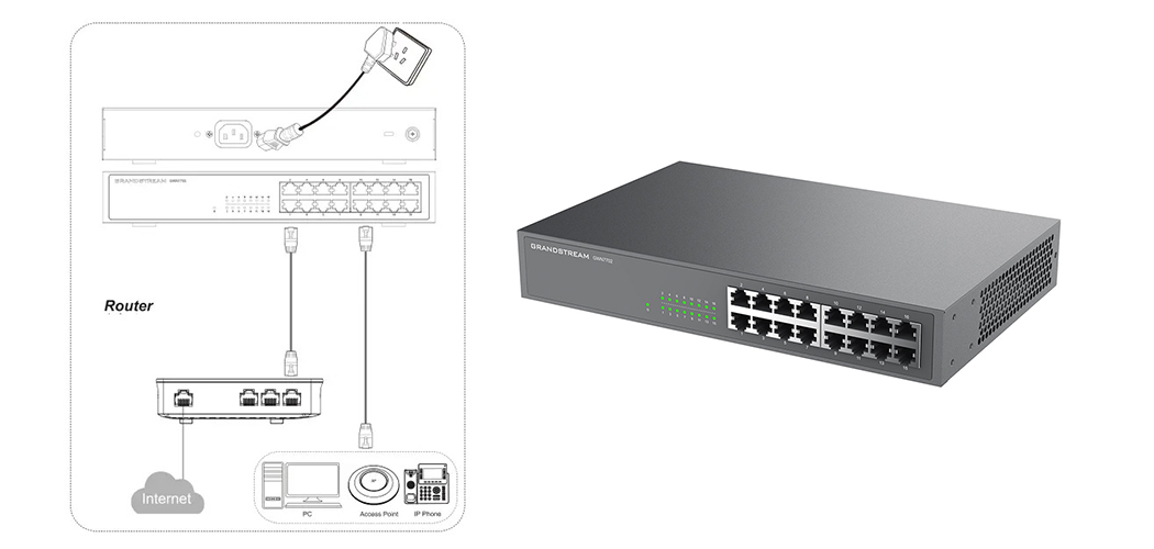 Grandstream GWN7702 Unmanaged Switch with 16 x 1GigE Ports - Desktop/Rack-Mount