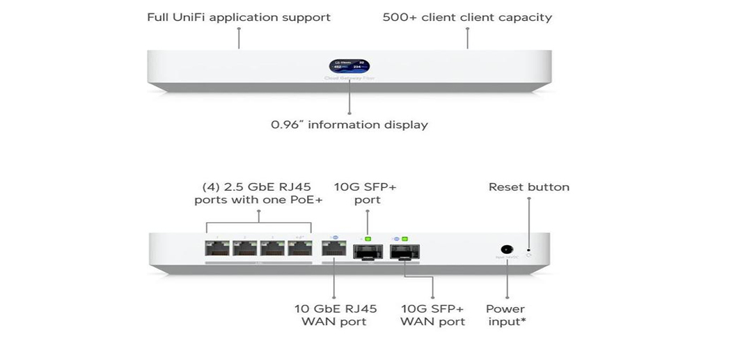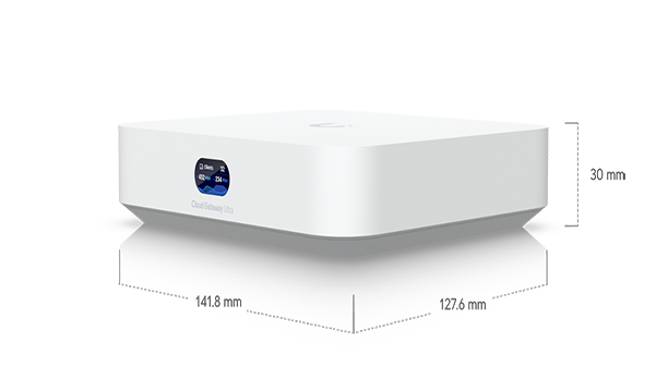 Compact Cloud Gateway with 30+ UniFi device / 300+ client support, 1 Gbps IPS routing, and multi-WAN load balancing.