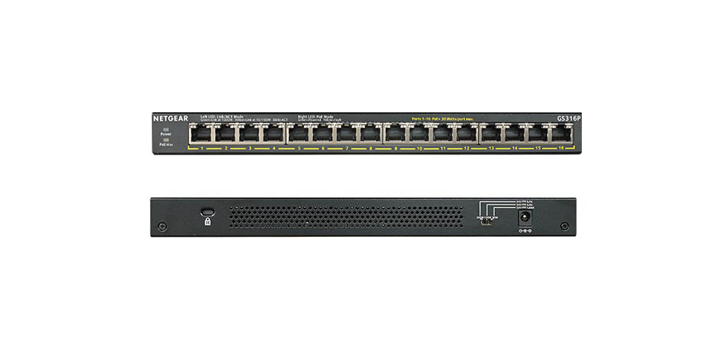 the GS316P 16-Port Gigabit PoE+ Compliant Unmanaged Switch. Capable