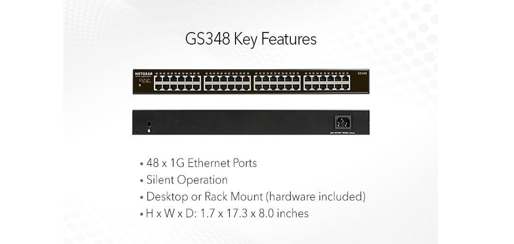 The NETGEAR 300 Series GS348 48-Port Gigabit Unmanaged Switch offers simple, reliable, and cost-effective network expansion for homes and small offices. With plug-and-play setup, it instantly connects multiple devices without configuration. Its 48 ports help reduce network congestion and prepare your setup for future growth.